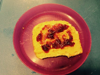 Você não pode ter um PB2 desafio sem testar no clássico de aplicação de um PB&J, certo? Direito. Segui as instruções da embalagem de misturar duas colheres de sopa PB2 com uma colher de água e agitei-a. E que desilusão.desculpa PB2, mas não és o mesmo quando estás espalhado pelo pão. A consistência da mistura PB2 era levemente enrugada e não parecia apetitosa. Ao prová-lo, pela primeira vez durante esta experiência, senti que estava a ter um substituto de manteiga de amendoim em vez do verdadeiro. E o substituto não se aproximou da manteiga de amendoim, nem de longe.tinha planeado dar isto ao meu filho de 3 anos para ver se ele reparava na diferença, mas quando provei por mim próprio, não consegui fazê-lo. Talvez a reacção deles fosse engraçada, mas nem a Lady Tremaine teria dado esta impostora de manteiga de amendoim à Cinderela. Confia em mim.)
