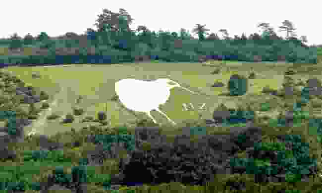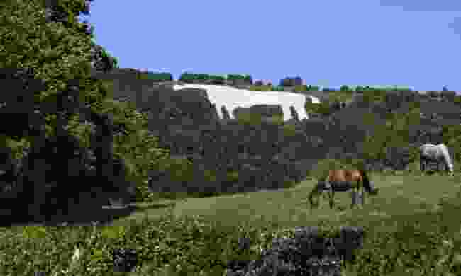 Esculpida em giz de pastagem, logo abaixo o site do Bratton Acampamento da Idade do Ferro hillfort, em Wiltshire, the Westbury Cavalo Branco foi originalmente corte no final de 1600. A lenda sugere que ele foi criado para comemorar o Rei de Alfred vitória na Batalha de Eoandun aqui em 878.